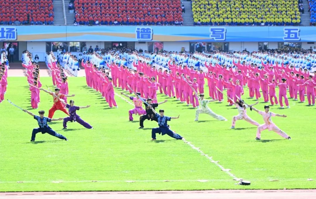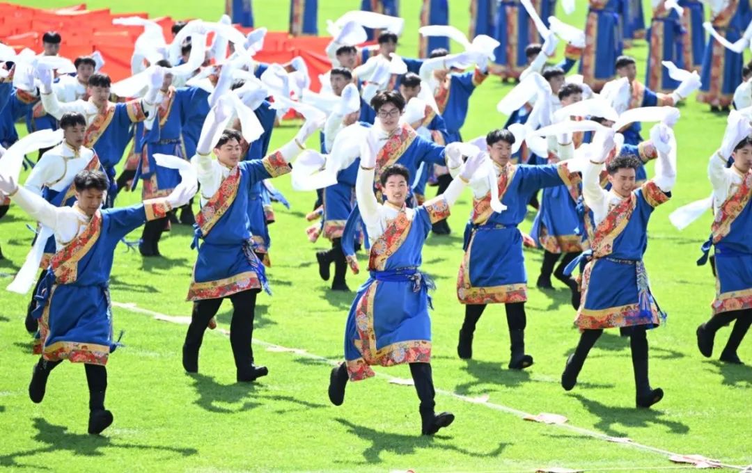 此次运动会开幕式以“逐梦新时代 青春向未来”为主题,分为“朗朗书声满校园”“莘莘学子传薪火”“文武之道映韶华”“心手相连谱新篇”“少年志气壮鼓韵”五个篇章,来自23所学校7000余名中小学生全方位地展示了我市中小学校普及阳光体育项目的成果。南关区东师东安学校的校园集体舞融体育、文艺为一体,在潜移默化中提升学生们的艺术修养;榆树市第一高中和实验高中武术表演刚柔相济、震撼人心,为全体观众带来一场精彩的传统武术视觉盛宴;花球操、踏板操、花式跳绳、呼啦圈、空竹、皮筋舞、花式篮球、独轮车等体育项目趣味性与体育性相辅相成,别具一格、精彩非凡;汽车区三中双色旗团体操英姿飒爽、花团锦簇,城建学校、朝鲜族中学、长春希望高中带来的藏族、朝鲜族、维吾尔族民族舞蹈,展示了民族团结教育的累累硕果;二道区53中学等五所学校带来的中国鼓、腰鼓、萨满鼓表演,鼓声隆隆、响彻穹宇,配合朗朗读书声将现场气氛推向高潮,各文体特色项目展示充分体现了新时代青少年的风采和良好精神风貌。