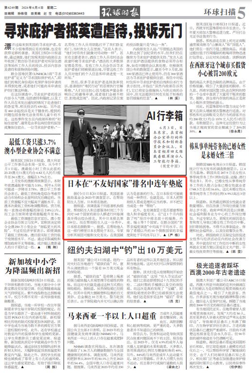 环球时报向上滑动看下一个原标题:《“不友好国家”,日本垫底》