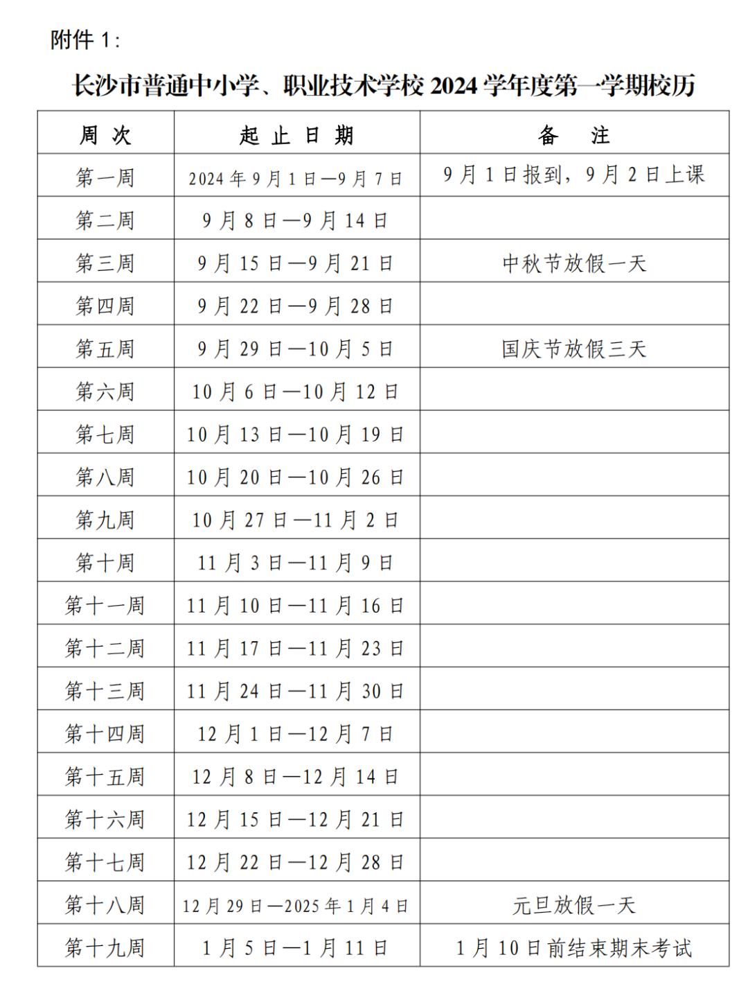 2024年9月2日上课,2025年1月11日结束,全学期共19周。寒假从2025年1月12日开始,2月8日结束。