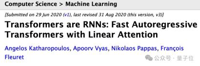 他们透露,论文题目中“Transformers are SSMs”是致敬了4年前的线性注意力经典论文“Transformers are RNNs”。