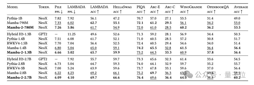 实验中,3B参数规模的Mamba-2,在300B tokens训练,超越了相同规模的Mamba-1和Transformer。