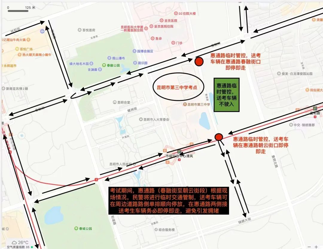 高考期间昆明这些路段可临时停车,这些路段需绕行→