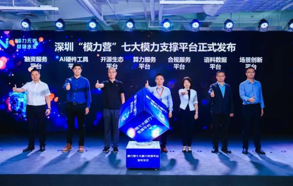 活动现场,大湾区首个专注大模型领域的旗舰孵化器——深圳“模力营”AI生态社区揭牌,首批11家人工智能企业签约入驻“模力营”。