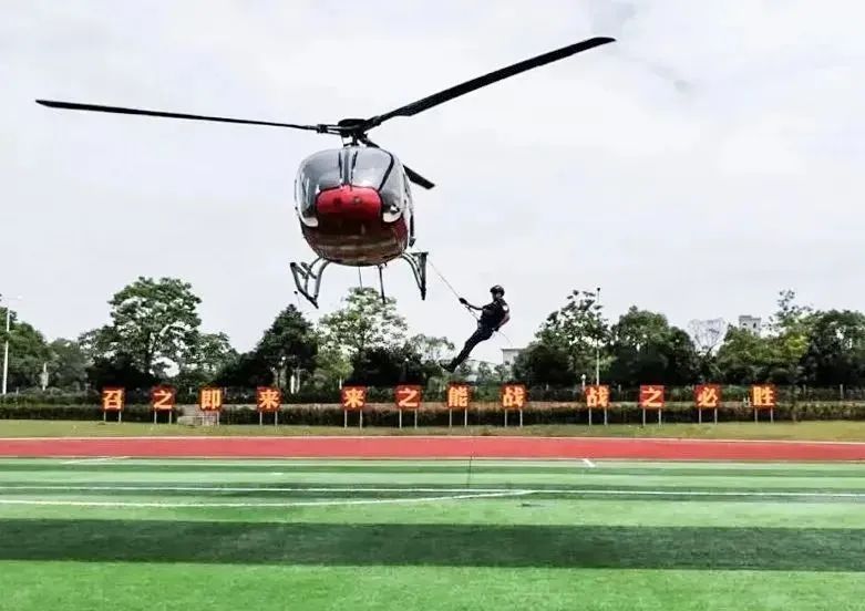 特警人员在执行紧急任务时使用直升机索降,能够迅速、准确地到达任务现场,快速开展救援和处置工作,大大提高在复杂环境下开展多样化实战任务的能力,为维护社会治安稳定、保障人民安居乐业起到积极作用。