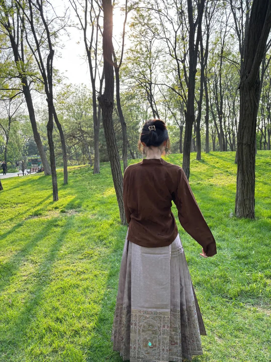 传统马面裙的穿法是“衣掩裙”,即上衣盖住裙头,对身材的包容度更高。而现在流行的“裙掩衣”穿法,则是将上衣束进裙头,手动凸显出腰部曲线,苹果型身材的人穿上会暴露出腰腹部的缺点,而梨形身材则容易因为腰臀比过大,使马面裙的裙褶“炸开”。