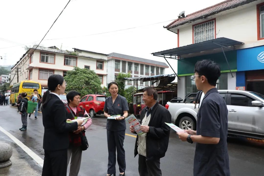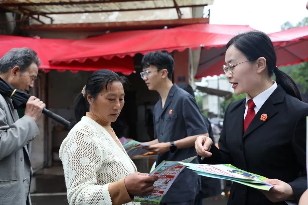 以法之名 共护青绿6月4日早上8时,随着清晨阵阵清风,天全县法院干警前往仁义镇开展世界环境日专题普法宣传活动。恰逢仁义镇赶集日,活动现场人头攒动,法院干警刚刚开始进行普法宣传,就有群众上来围观。
