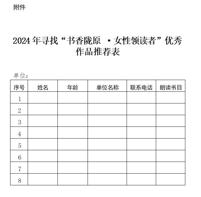 附件:2024 年 “书香陇原 · 女性领读者”报名表