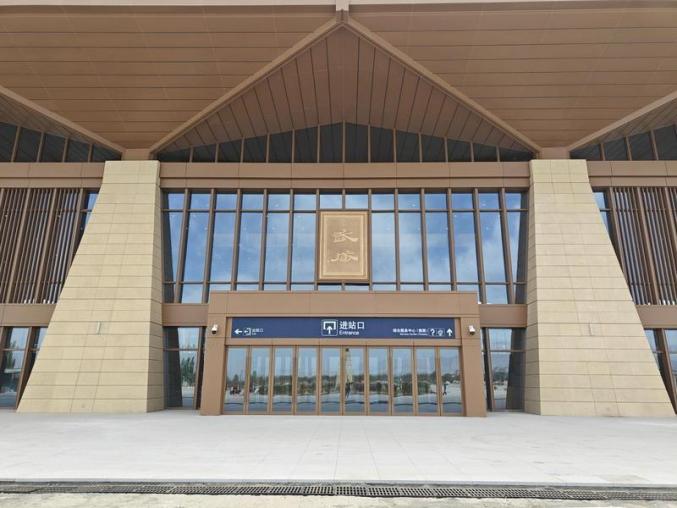 (站前广场上地标铜奔马昂首挺立)走进高铁站,站前广场平整开阔,中国旅游标志铜奔马昂首挺立。以浅灰色为主色调,沙黄色为辅助色的站房美观大气,处处体现了武威悠久的历史文化底蕴。随着“进度条”的持续拉满,自5月8日起,兰张高铁兰武段正式进入为期30天的运行试验阶段。