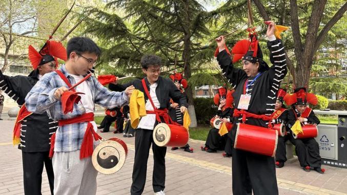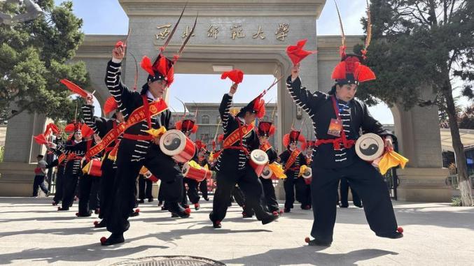 (“引客入凉”宣传推介活动走进高校)一条高铁线,开辟一个新市场。兰张高铁兰武段武威(高铁)东站开通,让文旅活了起来。“引客入凉”宣传推介活动走进周边城市、走进高校学子中间,非遗展演体验、特色文创展示、资源推介、文艺表演、互动交流等内容的宣传推介,进一步展现了凉州文化旅游产品的影响力和吸引力。每到一处,国家级非物质文化遗产“凉州攻鼓子”和“凉州贤孝”的生动表演引得在场观众掌声不断,喝彩连连。震天的鼓声、矫健的身姿、激昂的旋律、高扬的弹唱,展现了天马故乡、凉州儿女的精神风貌和文化追求,反映了生生不息的华夏文明和丝绸之路文明的核心价值,提升“天马行空 自在武威”“天马故乡 醉美凉州”的知名度。