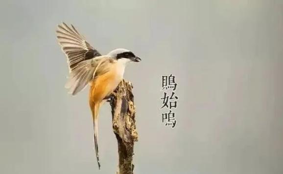 二候鹏始鸣;鹏始鸣的意思是喜阴的伯劳鸟开始在枝头出现,并且感阴而鸣,