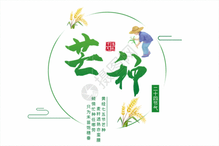芒种,是二十四节气之第九个节气,夏季的第三个节气,干支历午月的起始。斗指巳,太阳黄经达75°,于每年公历6月5-7日交节。芒种含义是有芒之谷类作物可种,过此即失效。这个时节气温显著升高、雨量充沛、空气湿度大,适宜晚稻等谷类作物种植。农事耕种以"芒种"这节气为界,过此之后种植成活率就越来越低。它是古代农耕文化对于节令的反映。
