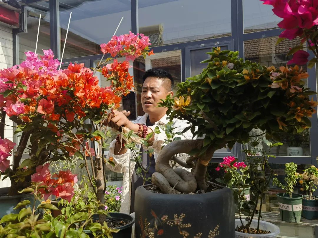 “我一大爱好就是种养花草,在从事工艺玻璃贸易时,一有空闲时间,就在网上与全国各地网友交流养花知识,积累了一些粉丝,电商创业有了一定基础。”徐亮搬来一盆三角梅老桩。