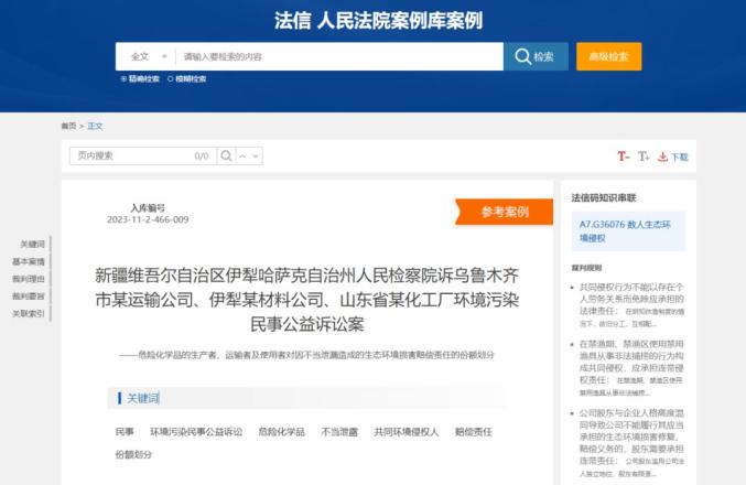 1.新疆维吾尔自治区伊犁哈萨克自治州人民检察院诉乌鲁木齐市某运输公司、伊犁某材料公司、山东省某化工厂环境污染民事公益诉讼案——危险化学品的生产者、运输者及使用者对因不当泄漏造成的生态环境损害赔偿责任的份额划分基本案情