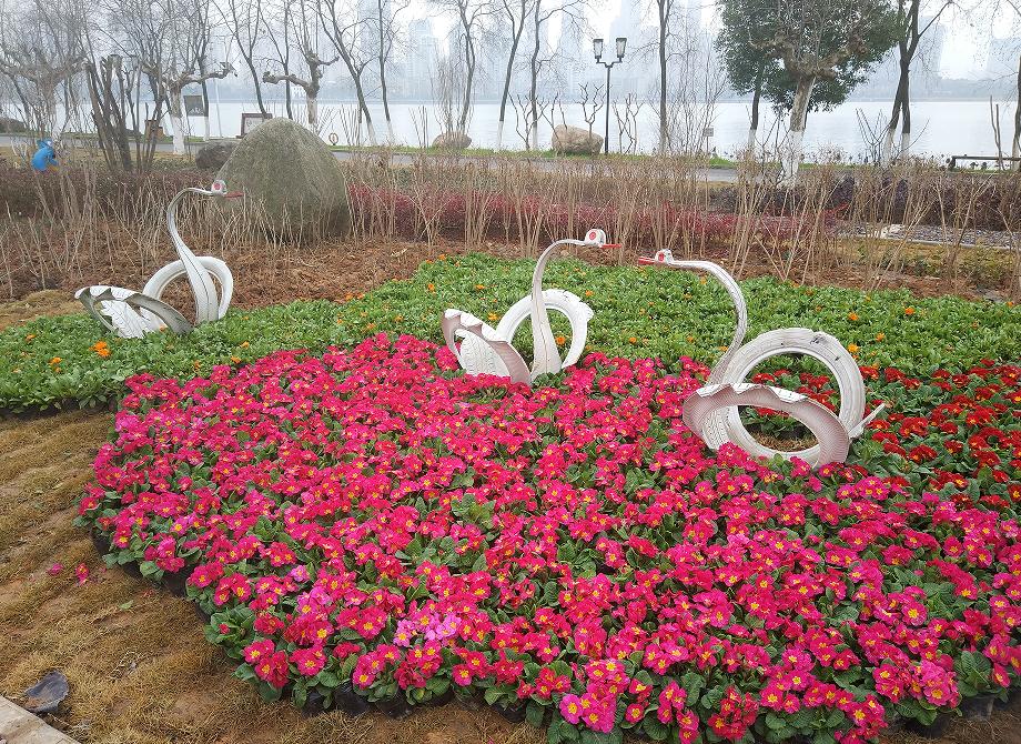 利用家庭废旧物品作为道具改造的梦想花园/图片来源:武汉市沙湖公园管理处