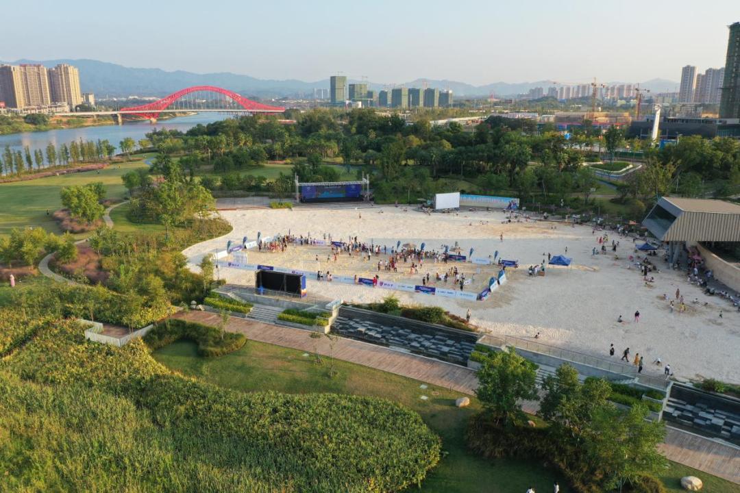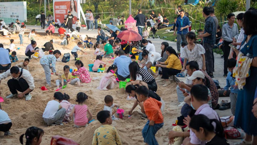 滨江公园中心为大型人工沙滩,面积约8000平方米,选用无毒无害的白色海沙。儿童游乐区配备了丰富多样的沙具,如铲子、桶、玩具车等,孩子们可以在沙滩上建造城堡、挖掘宝藏。每逢周末和节假日,沙滩区定期举办亲子活动,为孩子们创造了一个友好、安全、交往的沙滩体验环境。