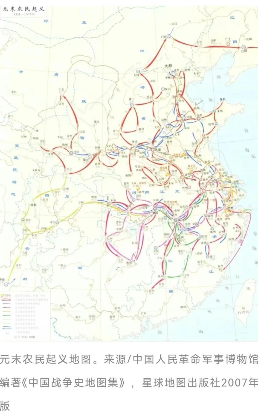 红巾军带头大哥元朝末年,朝廷官府统治无道,吏治腐败,大江南北灾害频仍,民生凋敝,引爆了积攒多年的阶级矛盾和民族矛盾。元顺帝继位初期,小规模的农民起义几乎遍及全国。1351年,因官府征发徭役治理黄河的矛盾,“莫道石人一只眼,挑动黄河天下反”,以韩山童、刘福通为领袖的红巾军分别在河南、湖北两地举起义旗,反抗元朝统治,掀起了元末农民大起义的高潮。