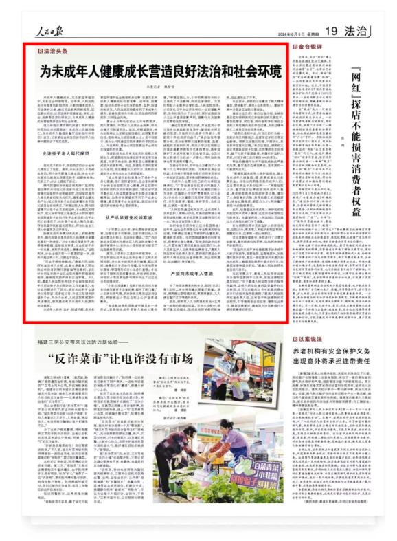 6月6日,人民日报刊发文章《为未成年人健康成长营造良好法治和社会环境》对人民法院依照最有利于未成年人原则,通过司法裁判明晰规则、引领社会风尚,以案促治破难题的生动实践进行了报道。其中,就介绍了西安法院审理的这一案件。
