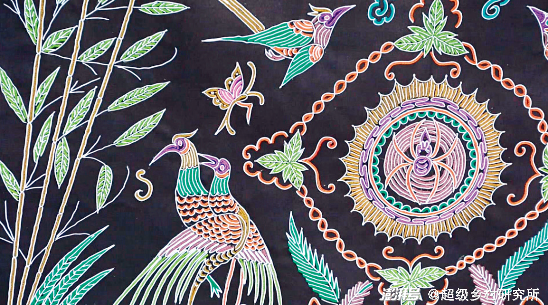以三都水族马尾绣为例,运用黄、绿、红等亮色,色彩使用上堪称浓墨重彩,厚重且对比强烈,此外非常讲究色彩搭配,只有将色彩的使用协调好,整个图案才能呈现出融洽的视觉效果。