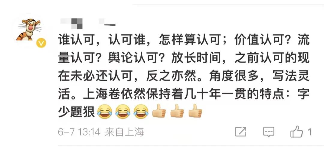 今天(6月7日)上午,高考语文正式落下帷幕,每年的高考语文作文题目都是网络上的热门话题。今年上海高考的语文作文题目是:生活中,人们常用认可度判别事物,区分高下。请写一篇文章,谈谈你对“认可度”的认识和思考。
