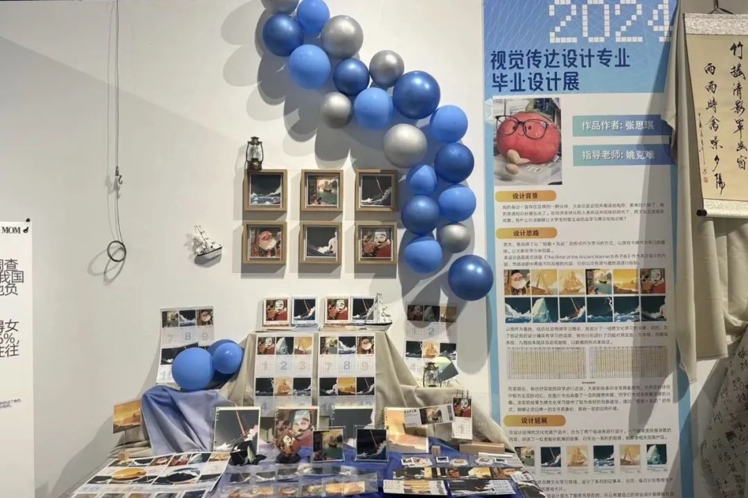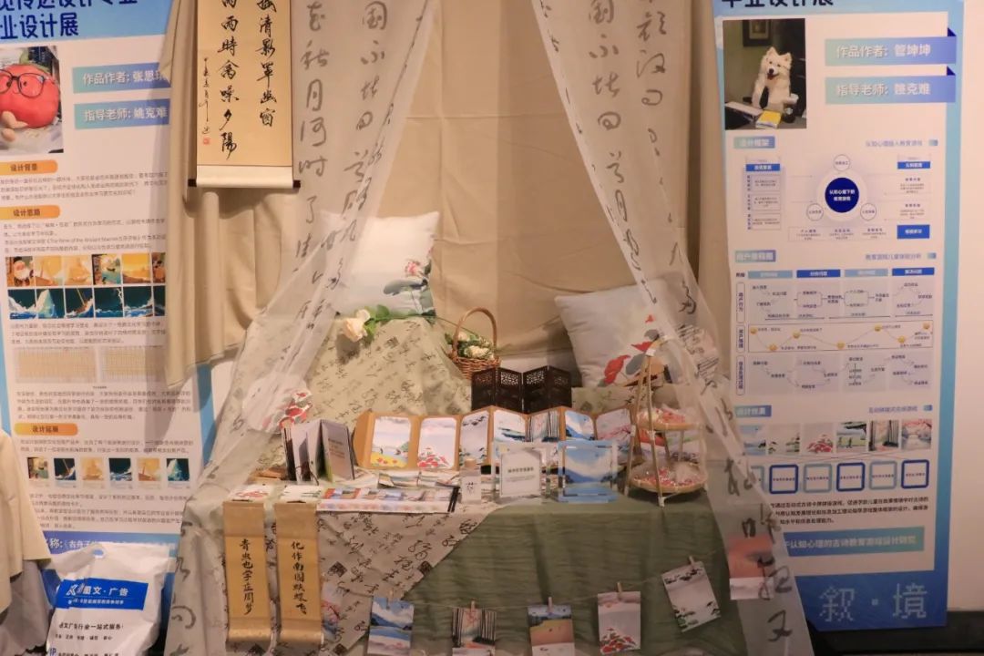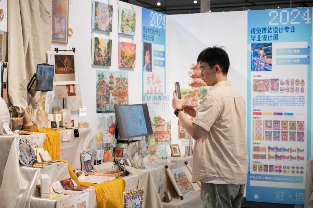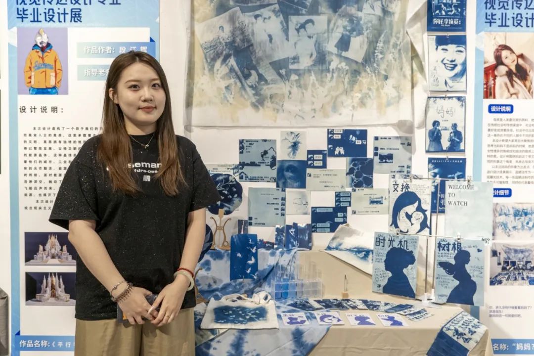一名同学向参观者介绍自己的毕设作品(晏华华 摄)本次展览艺术指导高尚桢老师介绍