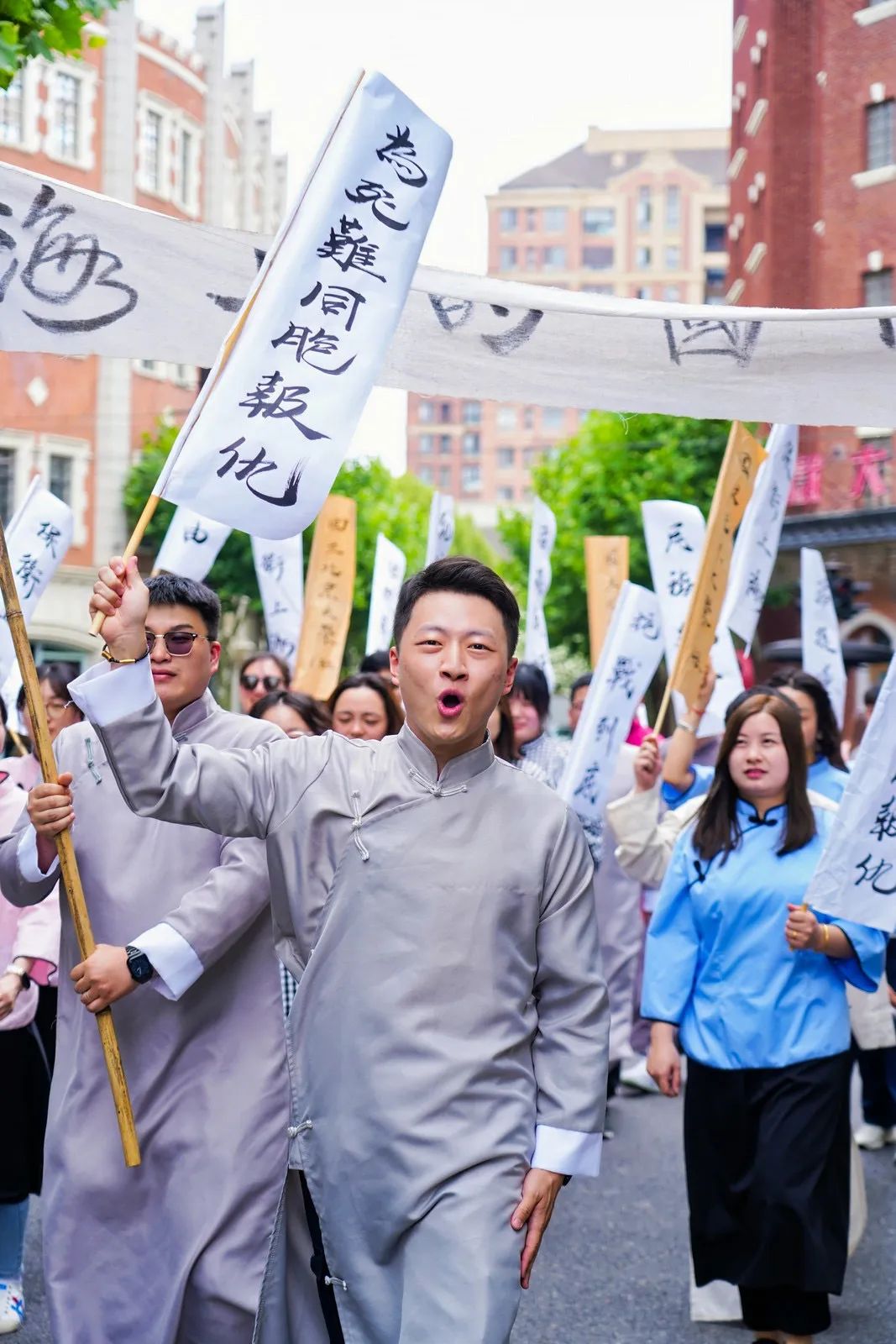 “上海,是中国人的上海”;“抗战到底”……在一声声的呐喊中,大家重拾当年的记忆,穿越时空,回到民国时期,先辈们的精神和我们融为一体,恍惚间仿佛成为了当年那群热血爱国青年。通过场景的再现,走在民国时期的街道上,经历浙江路桥、十六铺码头、百乐门等旧时场景,通过团队的协作、情景演绎,挖掘出那些隐藏在最深处的“密码”,保护最重要情报,为爱国运动的顺利开展献计献策。
