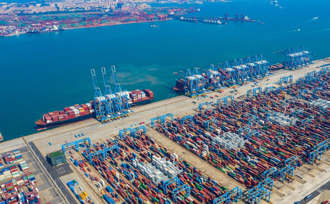 全国港口首座加氢站——前湾港区加氢站建成投产并全牌照运营。开通集装箱航线343条,其中外贸航线245条,国际友好港口44个。2023年沿海港口完成货物吞吐量19.7亿吨,同比增长4.4%。完成集装箱吞吐量4175万标箱,同比增长11.1%。“一带一路”青岛航运指数成为与沿线国家经贸往来的重要参考。