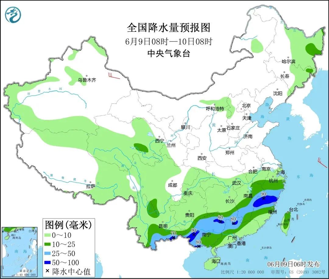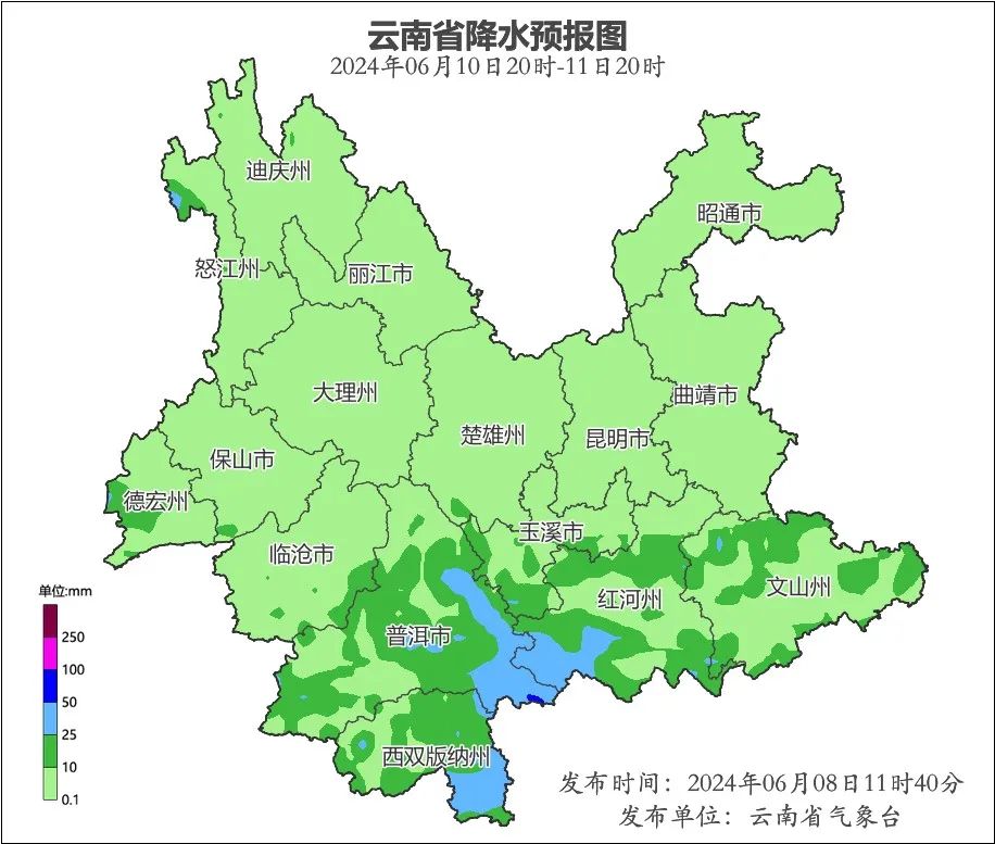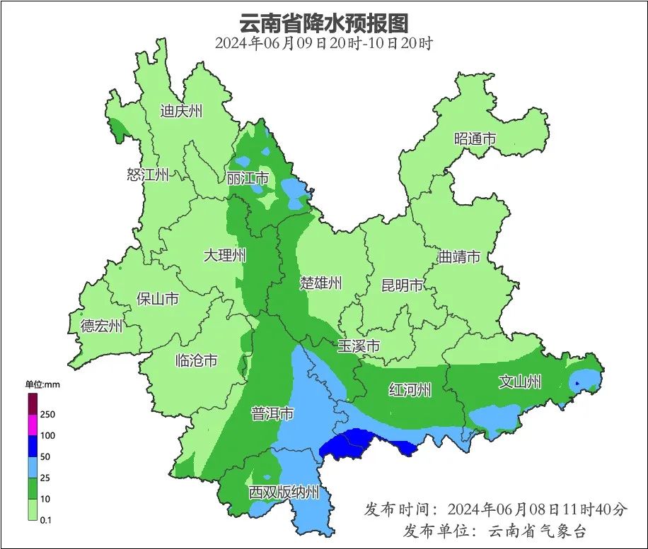 据云南省气象台预计6月9日(今天)