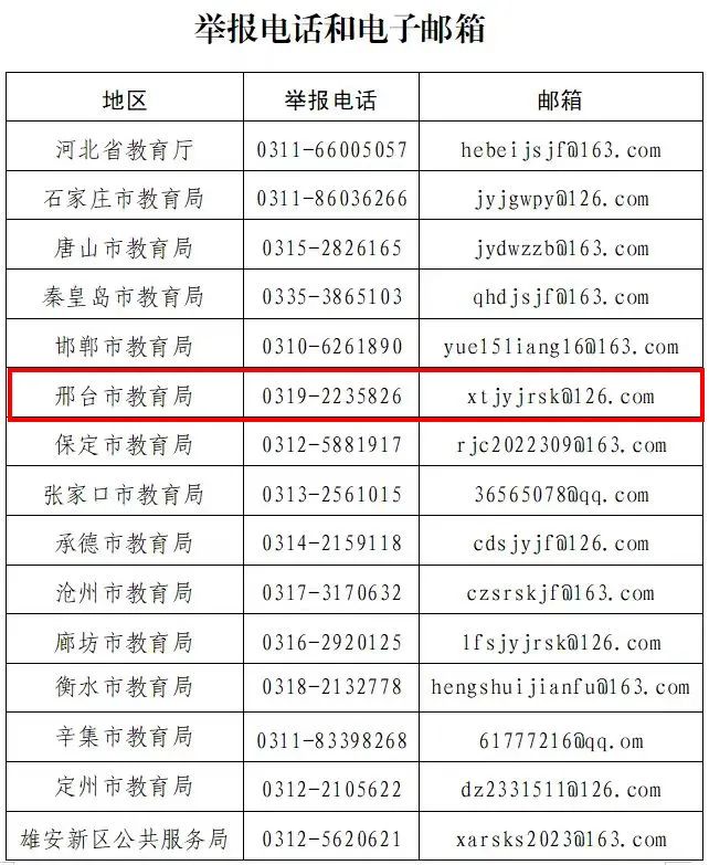如发现存在以上问题,可通过电话、电子邮件等方式向学校所在地教育行政部门或其上级教育行政部门举报,举报要求有具体线索材料,以个人名义反映的提倡实名,以单位名义反映的应加盖本单位印章。