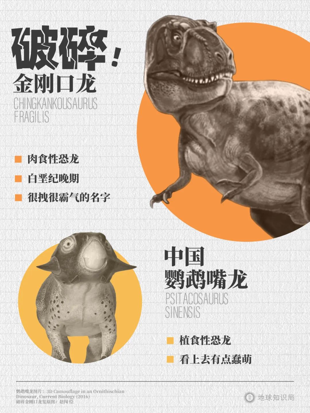 第二次大发现在1950—1960年,以青岛龙为代表,此外还有破碎金刚口龙(Chingkankousaurusfragilis)和中国鹦鹉嘴龙(Psitacosaurus sinensis),前者是巨大的肉食性恐龙,后者是娇小的植食性恐龙。▼