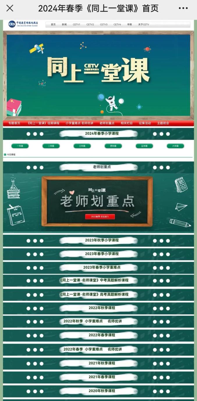 在网页中输入www.centv.cn后进入中国教育网络电视台首页可看到以下页面,从页面中红框位置即可进入《同上一堂课》专题,还可以回看往期课程。扫码一键进入专题!