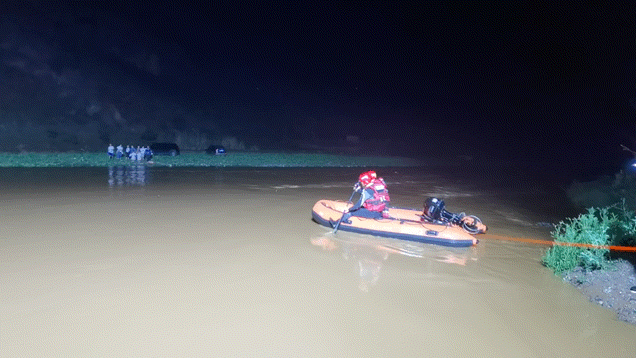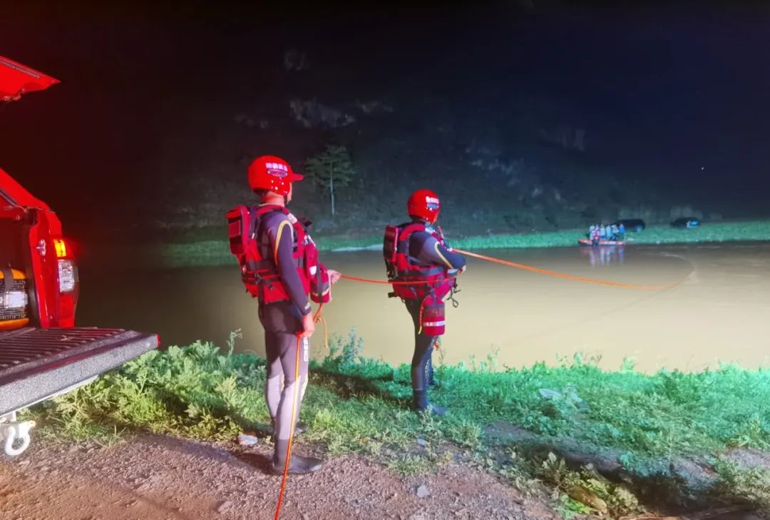 随后消防员查看水位、水域流域等情况在掌握现场实际情况后