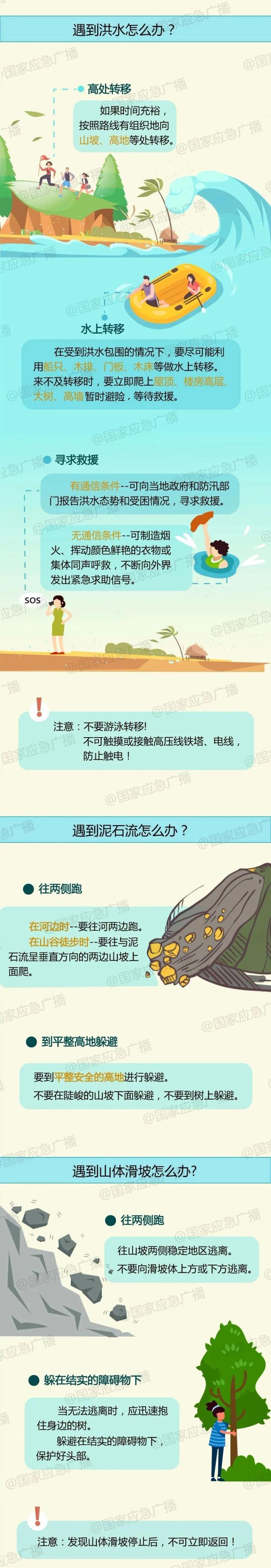 如果遭遇山洪、泥石流、山体滑坡等