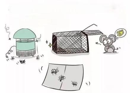 2.物理防治法:在老鼠经常出没的地方,放置有食饵的专用捕鼠器(如鼠夹、鼠笼)和粘鼠板,诱捕老鼠。