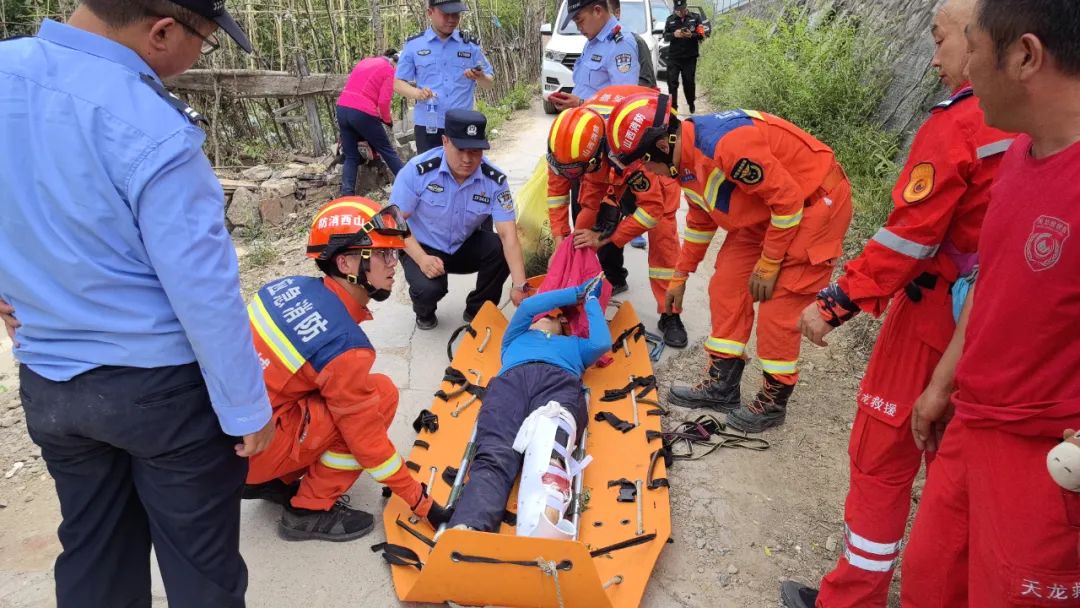 6月2日11时53分,陵川县马武寨附近有一名驴友在徒步前往抱犊沟村途中失足跌落悬崖,情况危急,需要紧急救援。消防救援人员立即出动赶往救援现场,到达马武寨村后,由于地势复杂,有多处悬崖峭壁,消防员带好救援装备,与当地村民、派出所民警和天龙救援队员一同徒步进山进行搜救。找到被困者后,消防救援人员立即科学施救,对被困人员受伤部位进行固定,并小心翼翼将其抬上担架固定好,沿崎岖山路返回。消防救援人员与民警、天龙救援以及当地村民一起,采用轮流替换,手抬多功能担架的方式,经过8个小时的紧急救援,先后将被困人员成功营救,目前,该人员在医院进行进一步治疗。