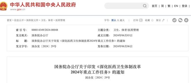 国务院办公厅关于印发《深化医药卫生体制改革2024年重点工作任务》的通知