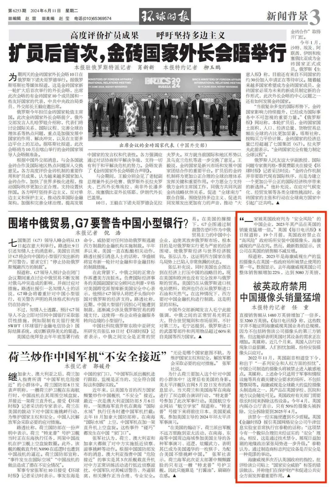 “一家被英国政府列为‘安全风险’的中国企业,2023年其产品在英国的销量竟猛增一倍。”英国《每日电讯报》8日报道称,19个月前,英国政府禁止在“高风险”政府场所安装中国摄像头,海康威视的产品在列。然而,最新数据显示,该公司在英国的销售额不减反增。