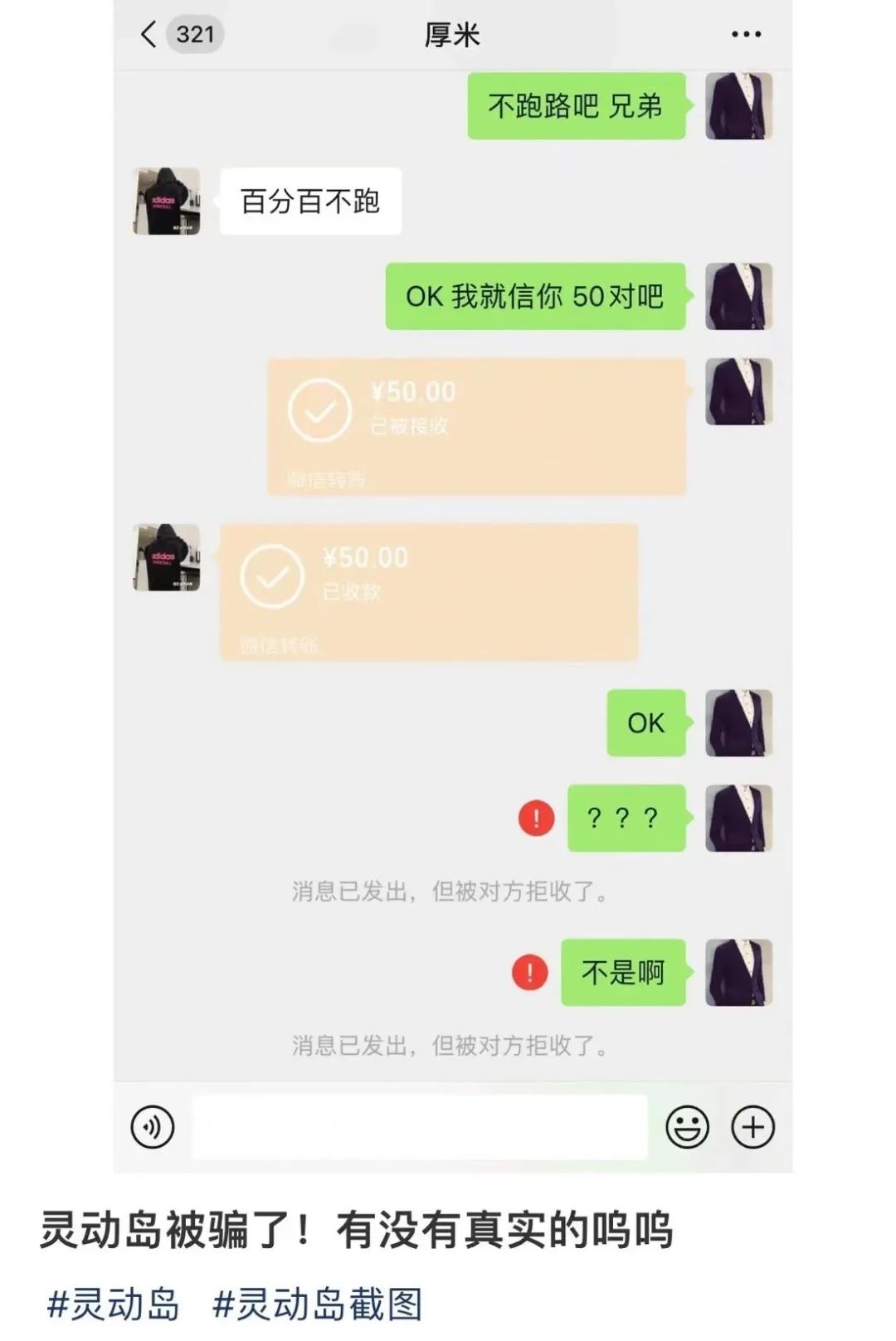 有些人可能还会装作自己买截图的时候被坑了,以受害者的身份来博取一些灵动岛机主的信任。。