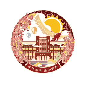 校训旋转徽章第一层以金融学院毓秀楼为主体