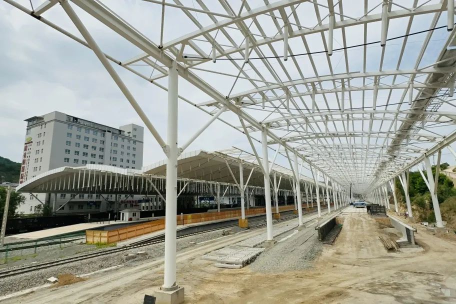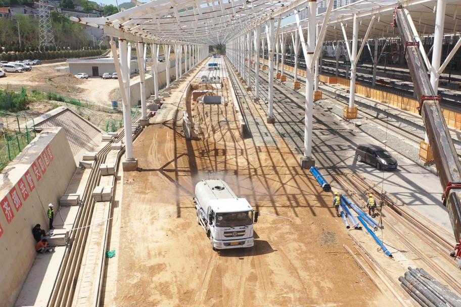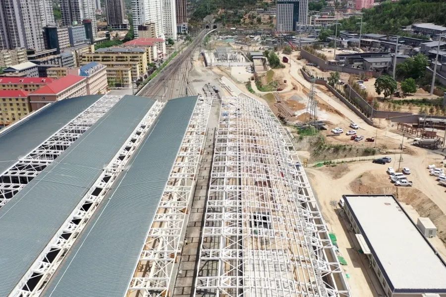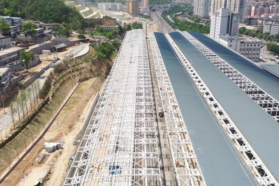 走入项目施工现场,可以看到工人们正在有条不紊地作业。据中铁二十一局的项目负责人介绍,目前延安站已完成所有地下构筑物工程、完成路堑挖土方157万方、完成路堑挖石方81万方、风雨棚主体结构已全部完成,剩余屋面板正在安装。
