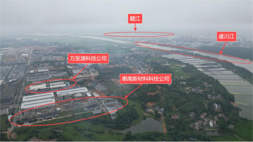 图1 2024年5月31日,督察组现场督察发现,2019年以来吉安市万安工业园在长江二级支流遂川江1公里范围内新建2个化工项目督察发现,赣江上游仍然存在非法采砂堆砂问题。赣州市赣县区金江砂业公司未经审批,侵占贡水河道约7亩堆放砂石,2024年在贡水河道禁采区违规采砂。于都振堃建材公司采砂船违规进入梓山镇山峰坝大桥上游贡水河道禁采区,2024年以清理河道名义违规采砂。