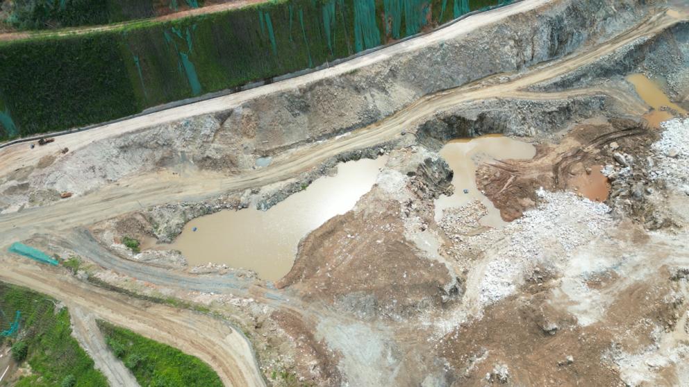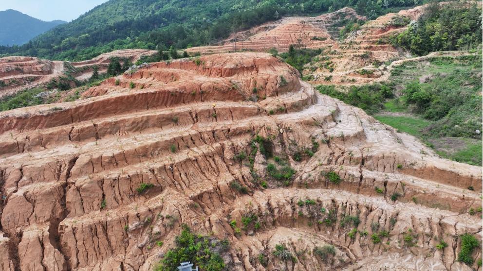 图3 2024年5月15日,督察组现场督察发现,赣州市寻乌县新天地铁矿公司采矿区环境污染严重,大量淋溶水积存在采矿坑内,废石废渣、污泥露天堆放抚州市、吉安市历史遗留矿山生态修复进展迟缓。“十四五”期间,抚州市应修复163座,截至目前仅完成38座;吉安市应修复175座,还有83座没有完成。吉安市永丰县娄元采石场位于永丰国家森林公园一级保护区范围内,2022年上报完成修复,督察发现,当地没有认真落实修复方案要求,开采坡面大量岩石裸露,坡脚存在大量浮石、浮渣,矿区未进行有效复绿,修复流于形式。