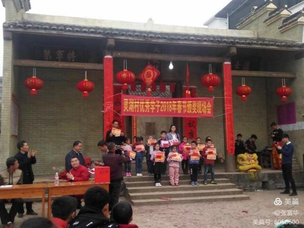 灵湖村非常重视教育,村民们积极捐资助学,利用春节期间,对灵湖村优秀学子给予奖励,激励全村学子积极学习,报效国家。