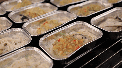 一排排食材就躺在制冷保鲜展示柜中,除了传统的腊味、还有海鲜干货和新鲜蔬菜,客人可根据自己的喜好进行选取,搭配出一煲煲独一无二的口味。