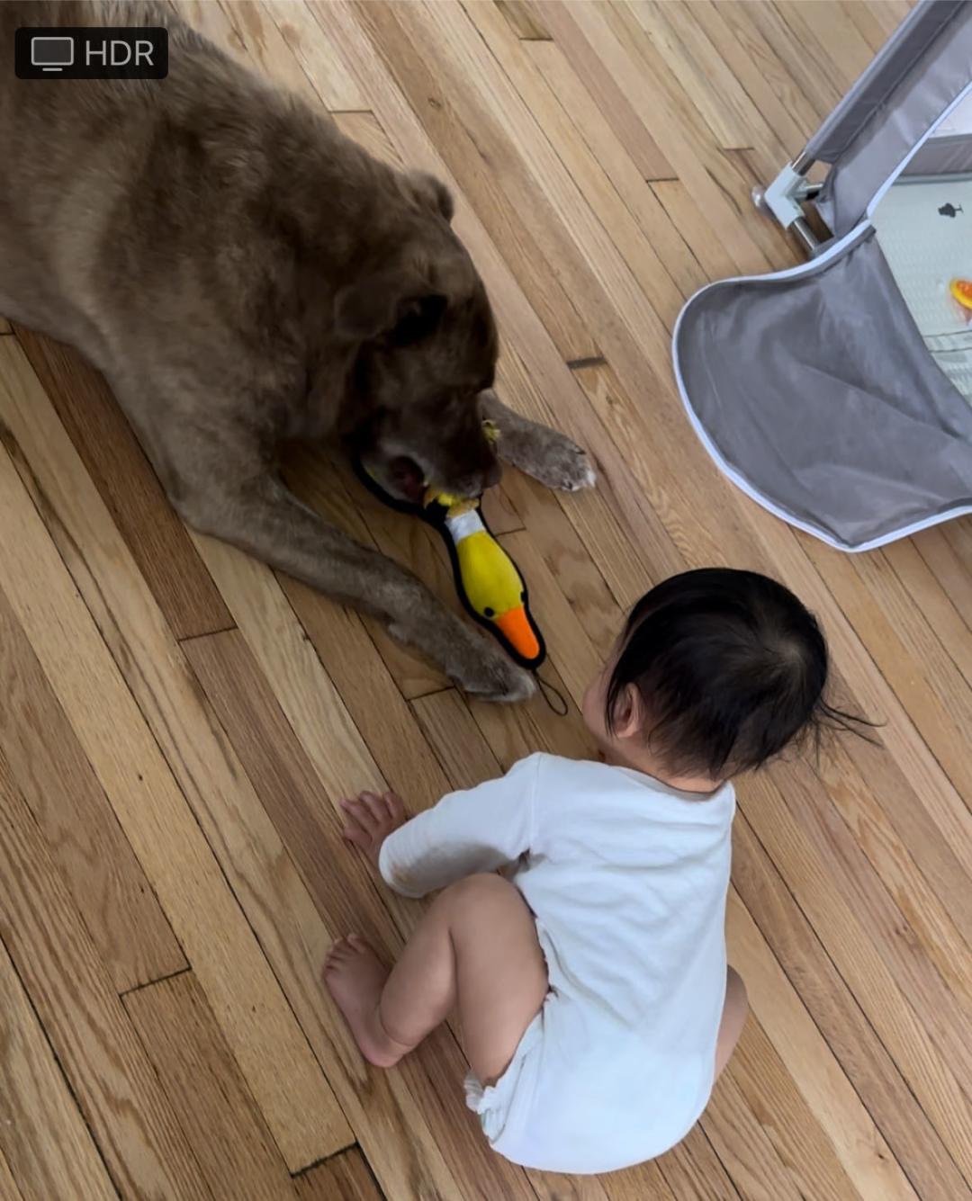 但有一件事情让婆婆和我妈站在了同一战线,就是狗毛。阔克是我们领养的一只杂种犬,春夏秋冬都会不停地掉毛。我们去儿医定期检查的时候也咨询过家里的宠物掉毛对宝宝会不会有什么影响,医生说不会,反而宠物会带来更多的微生物群,对宝宝的免疫力更好。我和队友本身就是比较Chill(松弛)的育儿方式,因此我们经常放手让宝宝跟狗狗互动,任由她在狗垫上打滚,把沾满狗毛的手放进嘴里。在老挝,狗一般都只养在院子里而不会进房子。婆婆对我们的做法虽不满,但是也没有多加阻止,只是每天唠唠叨叨地拖一遍地。看,有这么多呢。婆婆把扫出来的狗毛堆成一大把指给我们看。有一次我还听到婆婆跟阔克谈心。阔克,你好可爱,我好喜欢你,可是我就是不喜欢你的毛。听得我扑哧一声笑了出来。同样,我爸妈对狗毛也是如临大敌。一开始他们不让阔克进入宝宝的房间,看到阔克走过来也把它赶走,看到宝宝爬到狗垫旁边的时候火急火燎地跑来把宝宝抱开。别人家还有让宝宝和狗狗一起睡觉的呢,我调侃道。那怎么能行,这么多毛,容易引起哮喘的,吃下去多脏。听到这,阔克在旁边委屈地摇尾巴。不过一段时间后,婆婆和我妈也都妥协了。拖地还是要的,但是对宝宝和狗狗互动也没有那么紧张了。
