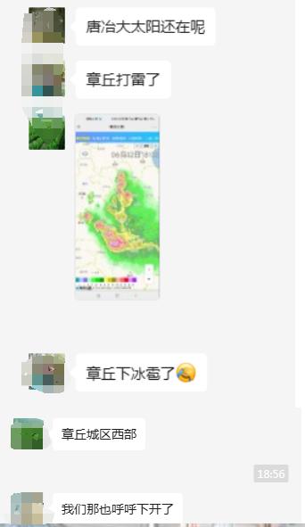 目前章丘区文祖街道和垛庄镇局地生成较强回波,预计今天下午到夜间章丘区中南部街道(镇)将出现雷阵雨天气,可能会造成雷电灾害事故,局部地区伴有短时强降雨、8~10级雷雨大风、小冰雹等灾害性天气,其他街道局地有雷阵雨天气,请注意防范!