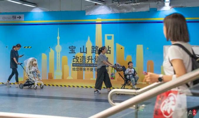 “宝山路站改造升级中”的字样