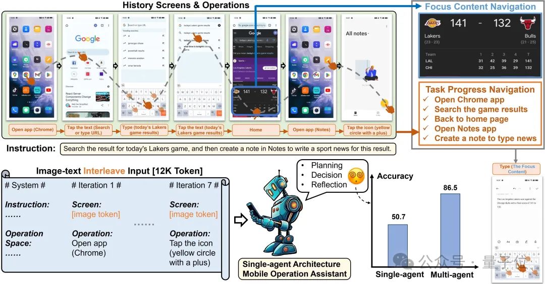 这项成果来自阿里通义实验室Mobile-Agent的v2版本更新,具体来说,本次升级有三大亮点: