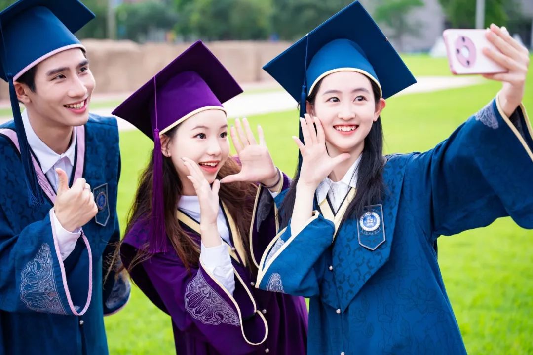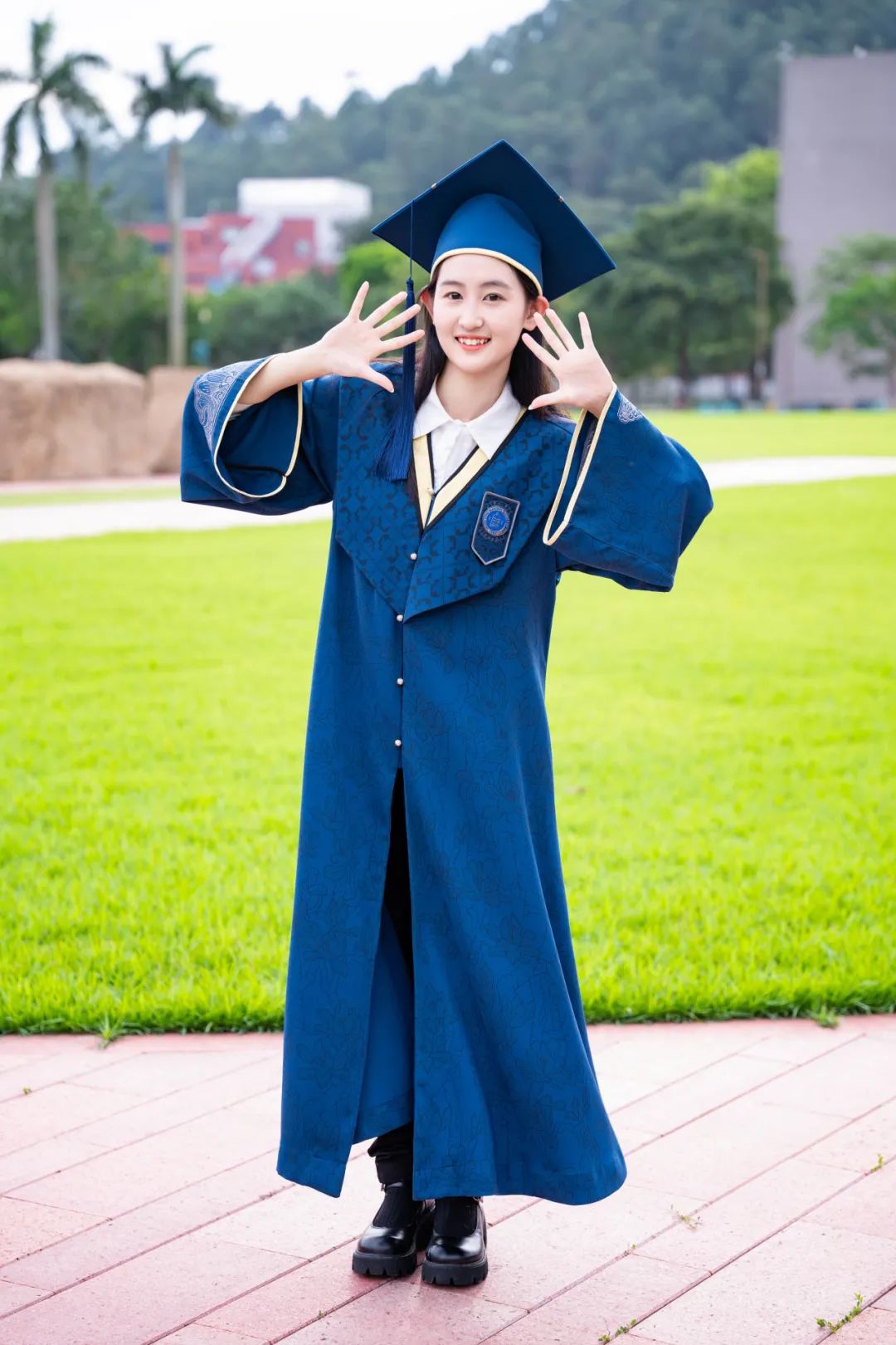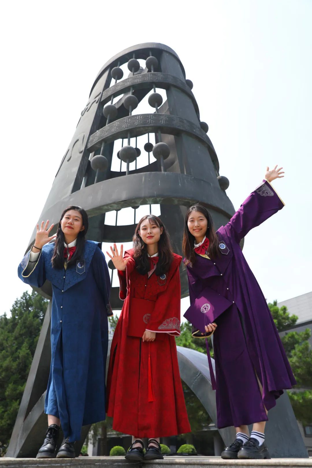 瑾瑜(学士服)青金石的古称,《说文》注“瑾瑜,美玉也”。陶渊明《读山海经十三首》咏“白玉凝素液,瑾瑜发奇光”。寓意着学子们能像玉石一样,经过学校和社会的雕琢后成为熠熠生辉的美玉。