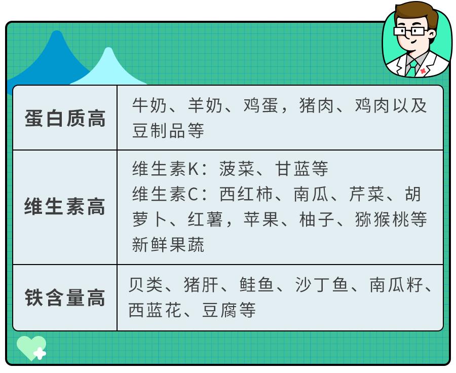 要多吃蔬菜、水果、粗粮这些富含维生素的食物。另外,绿叶蔬菜中的维生素 K 比较丰富,对人体的凝血功能至关重要。