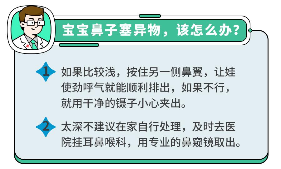 娃好动,跑、跳或者玩的时候,鼻子碰一下就容易磕出血。或者把玩具小零件儿、水果核儿、花生米等小东西塞进鼻子,也会引起流鼻血。